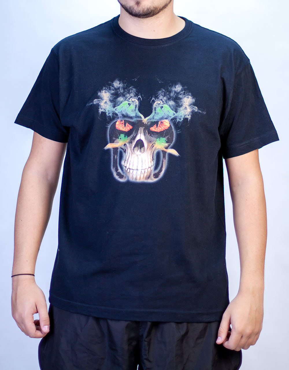Camiseta negra realizada en estampación digital con diseño de calavera de cabra